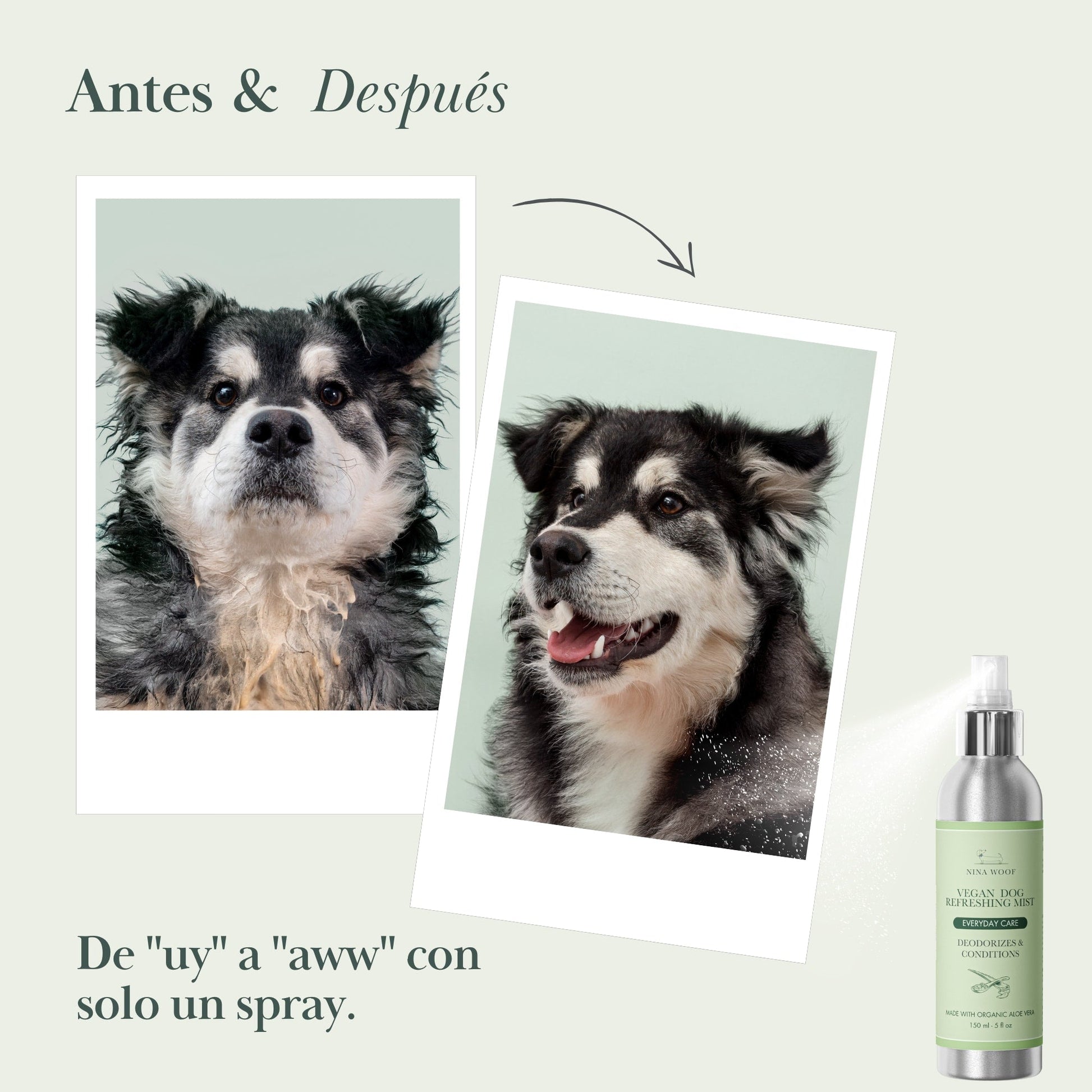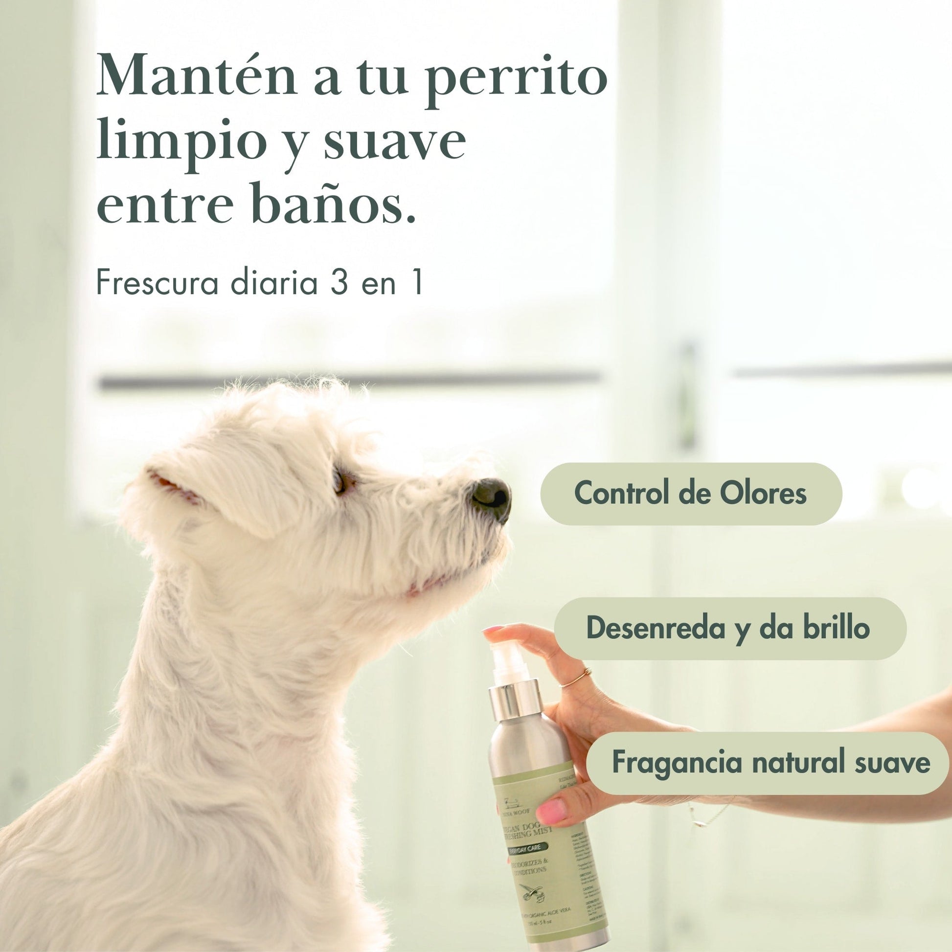 - Uso ideal: refrescar el pelaje entre baños, después del paseo o antes de una visita.